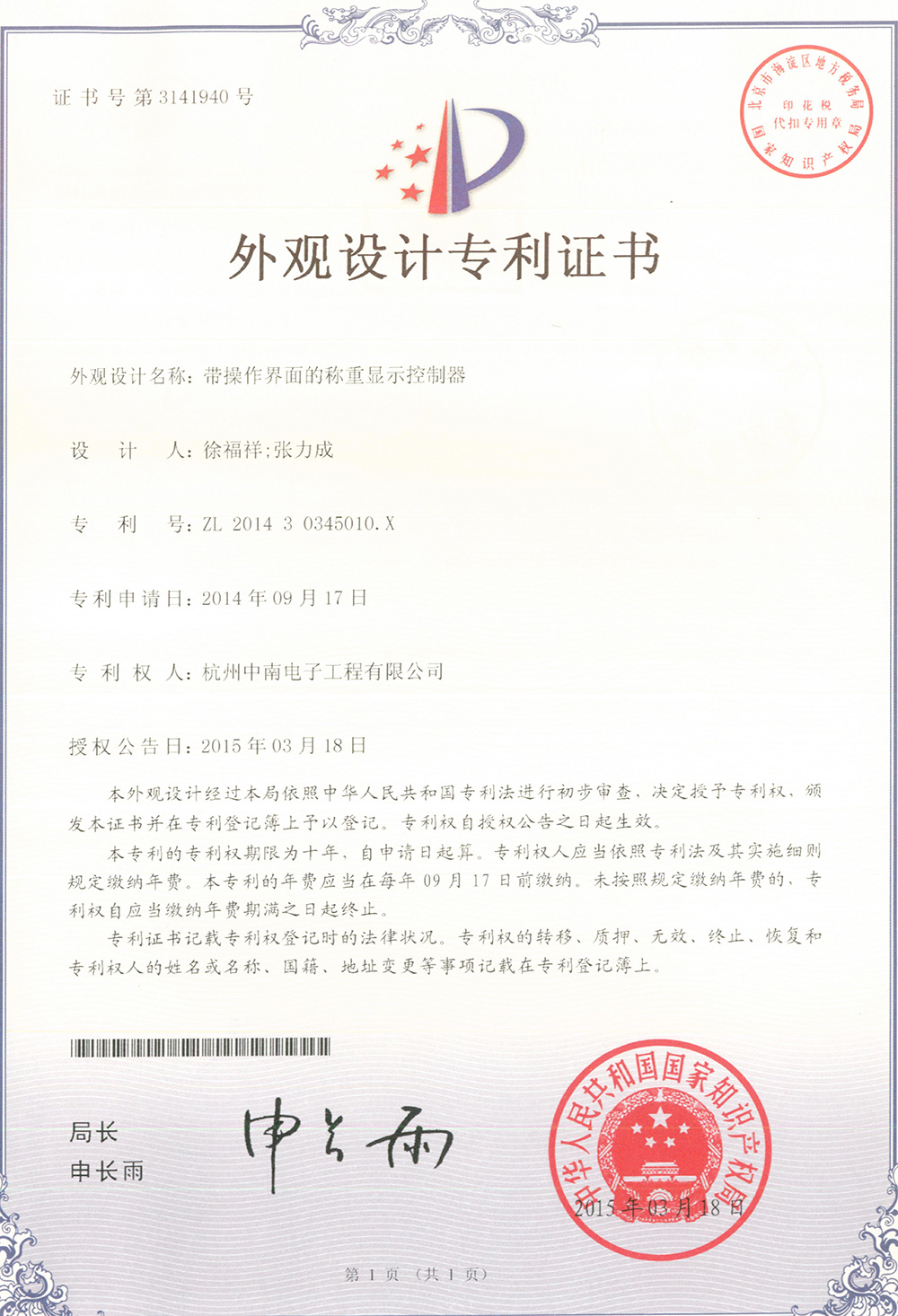 外觀設(shè)計(jì)-帶操作界面的稱重控制系統(tǒng)