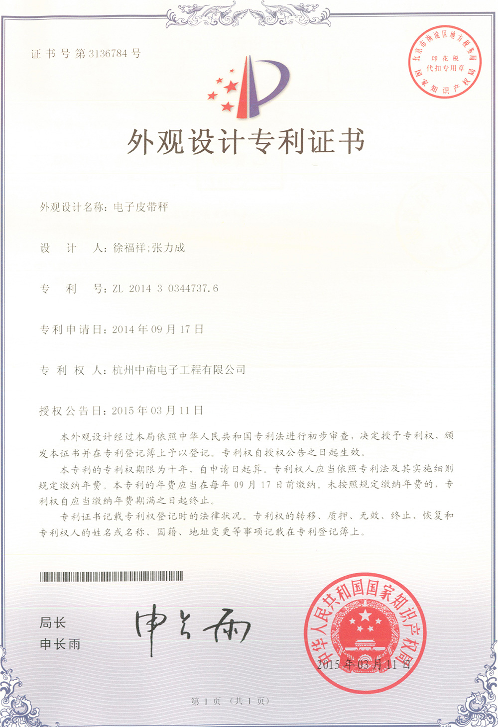 外觀設(shè)計(jì)專利-電子皮帶秤